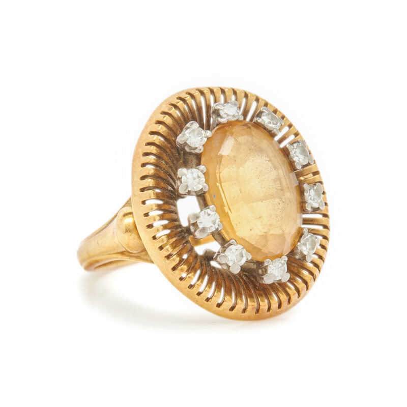 YELLOW GOLD, DIAMOND, AND CITRINE RING