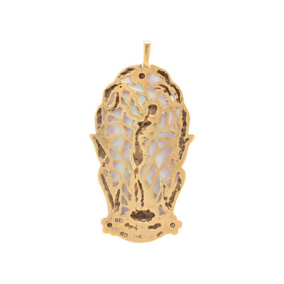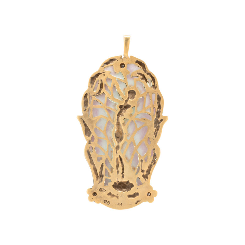 YELLOW GOLD, DIAMOND AND PLIQUE-A-JOUR PENDANT