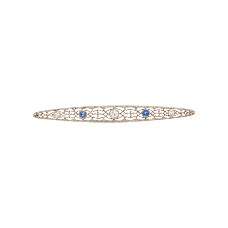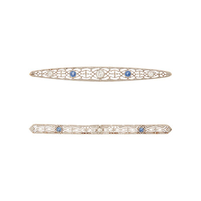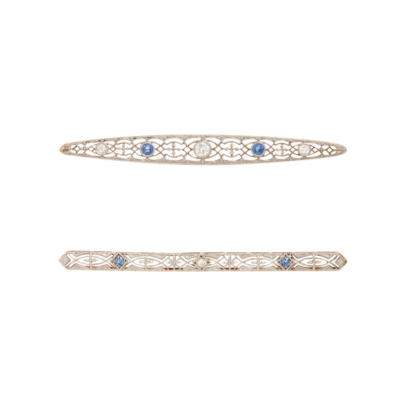 COLLECTION OF PLATINUM TOPPED YELLOW GOLD, SAPPHIRE, AND DIAMOND BAR PINS