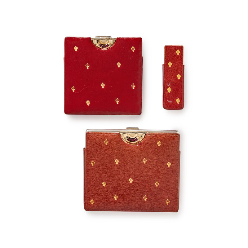 ART DECO, SET OF YELLOW GOLD, STERLING SILVER AND RUBY CASES