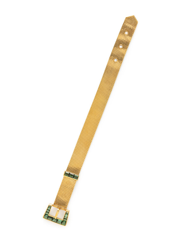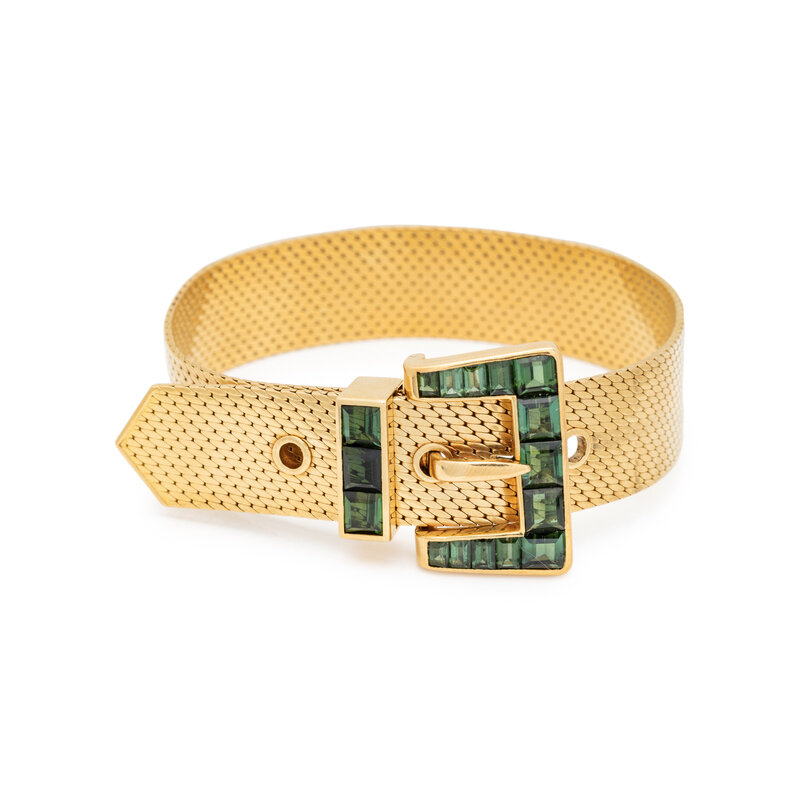 YELLOW GOLD AND GREEN TOURMALINE BUCKLE BRACELET