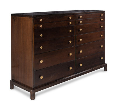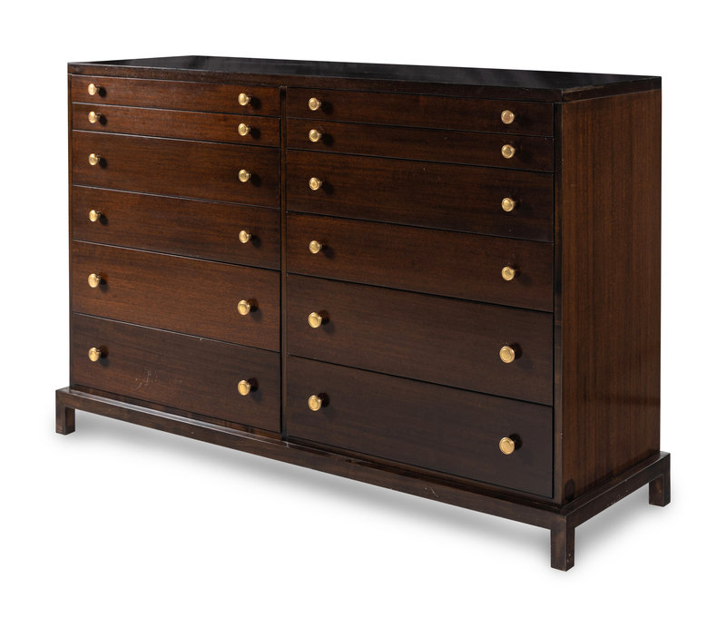 A Widdicomb Walnut and Bronze Chest of Drawers