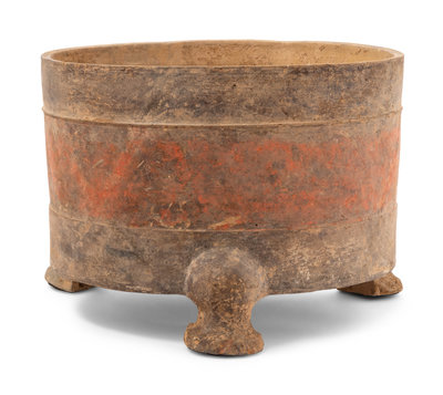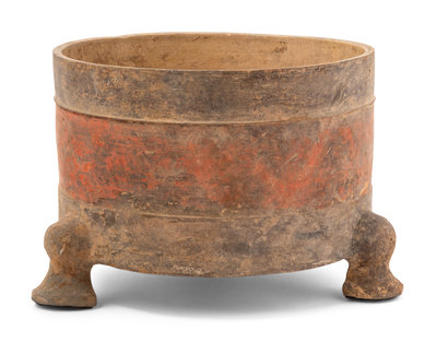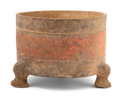 A Chinese Red Painted Grey Pottery Tripod Censer, Lu
