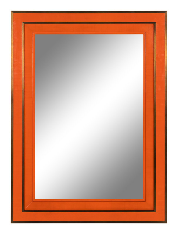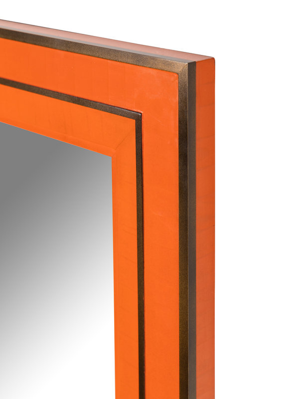 A Contemporary Orange Lacquer and Brass Mirror