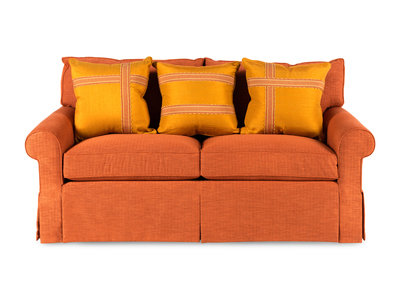A George Smith Two-Cushion Sofa with Custom Upholstery and Throw Pillows
