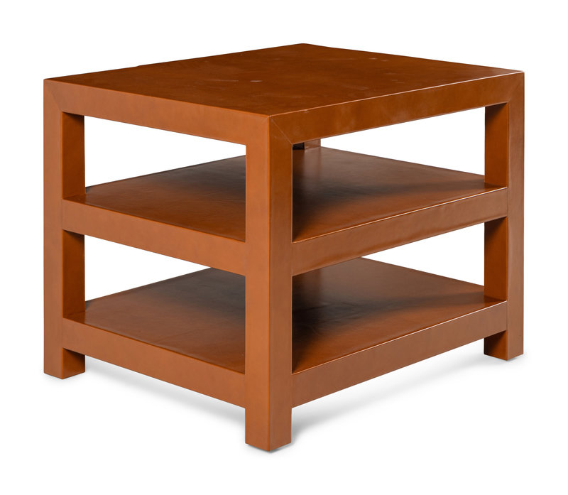 A Contemporary Edelman Leather-Veneered Three-Tier Side Table