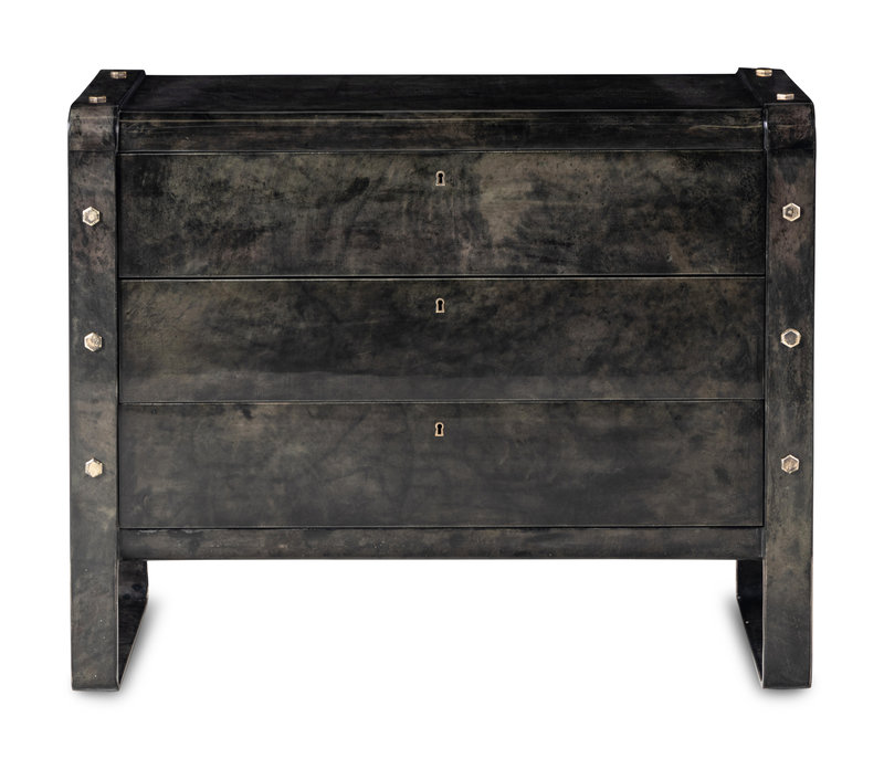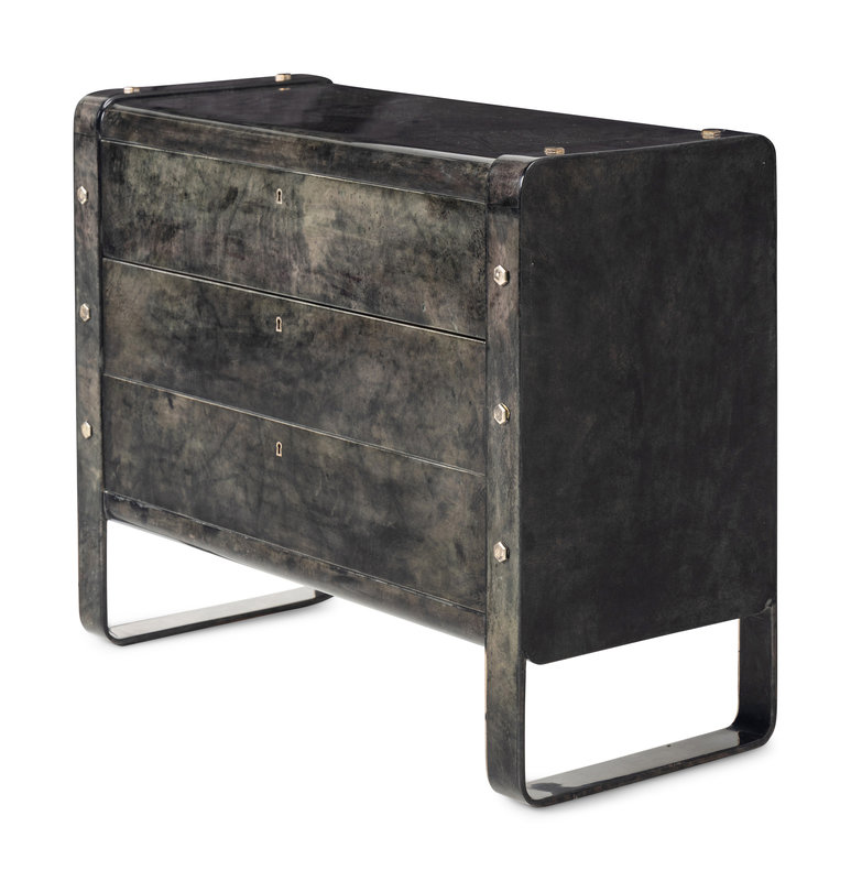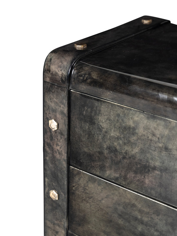 A Contemporary Lacquered Goatskin Veneered Chest of Drawers