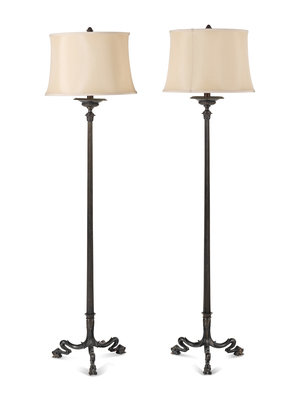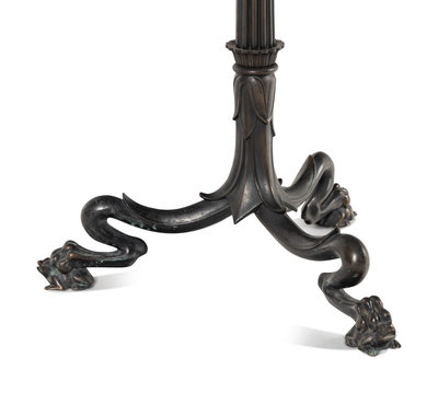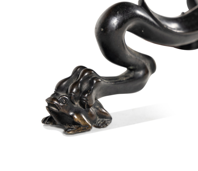 each tripartite base with legs ending in paw feet resting on seated frogs.