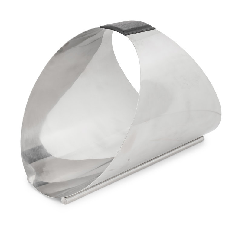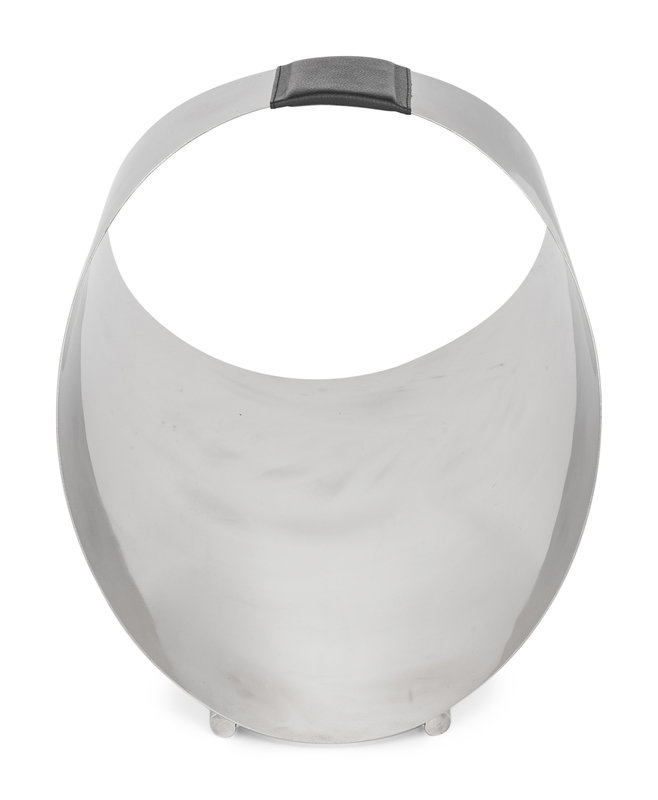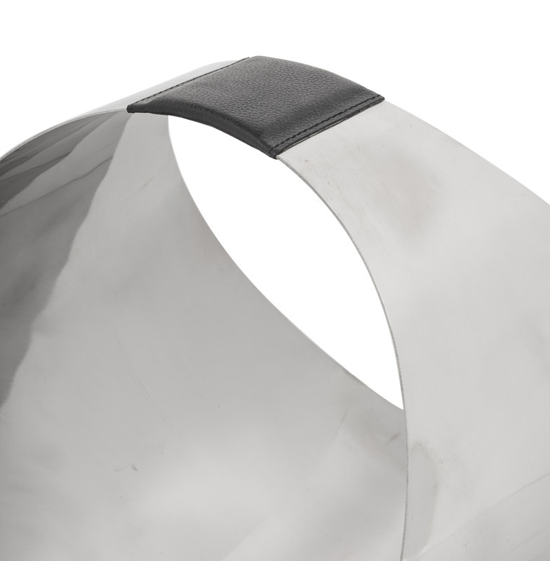 A Contemporary Stainless Steel and Leather Firewood or Magazine Caddy