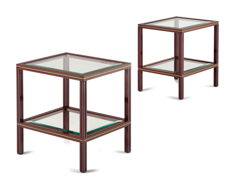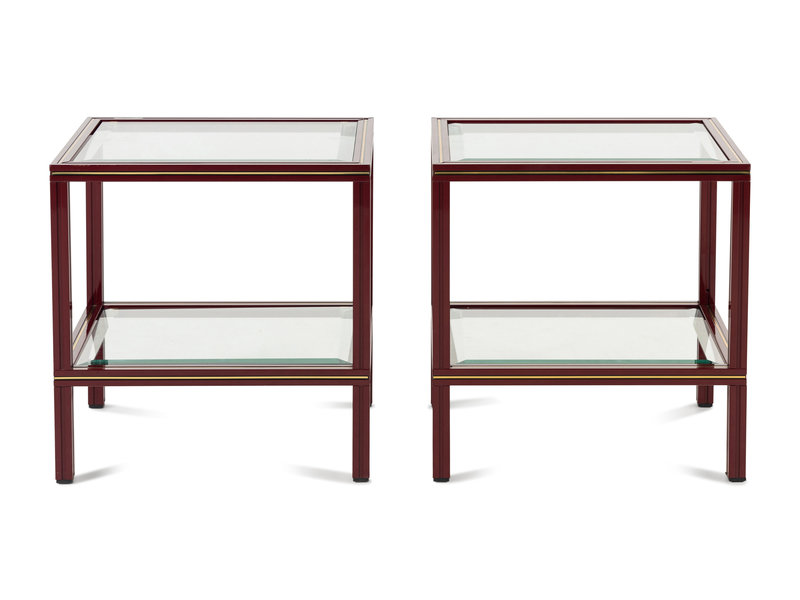 A Pair of Pierre Vandel Lacquer and Glass Side Tables