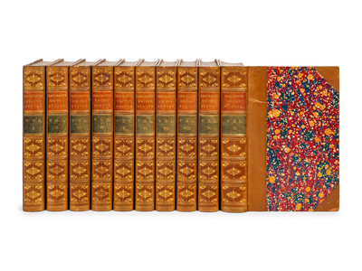 10 volumes, octavo. Engraved frontispieces and plates. (Some light spotting to a few leaves.) Contemporary half tan calf gilt, brown and green morocco lettering-pieces gilt, edges marbled. Twenty-fifth edition.
