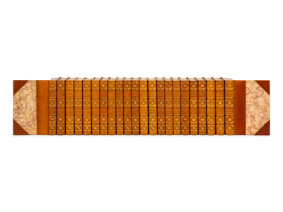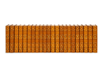 22 volumes, octavo. Engraved frontispieces and plates (a few with hand-coloring). Contemporary half tan morocco gilt, green morocco onlays on spines, top edge gilt, others uncut. LIMITED EDITION, number 18 of 250 copies of the "Aztec Edition."