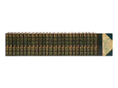 25 volumes, octavo. Engraved frontispieces and plates, most with hand-coloring. Contemporary half green morocco gilt, spines elaborately decorated with red morocco onlays, top edge gilt, others uncut. LIMITED EDITION, number 948 of 1,000 copies.