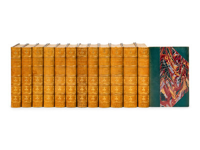 12 volumes, octavo. Engraved frontispieces. Contemporary half green morocco gilt, top edge gilt, others uncut. (Spines sunned.) LIMITED EDITION, one of 250 unnumbered copies.