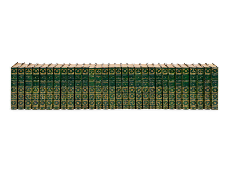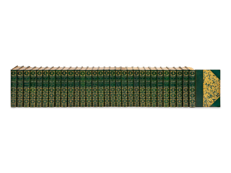 30 volumes, octavo. Frontispieces; titles printed on japan vellum. Contemporary half green morocco gilt, top edge gilt, others uncut, stamp signed: "World's Columbian Exposition, 1893, Estes & Lauriat Boston."