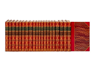 20 volumes, octavo. Engraved frontispieces and plates. (Some minor offsetting and a few minor stains.) Contemporary half red calf gilt, green and brown morocco lettering-pieces gilt, top edge gilt, others uncut.
