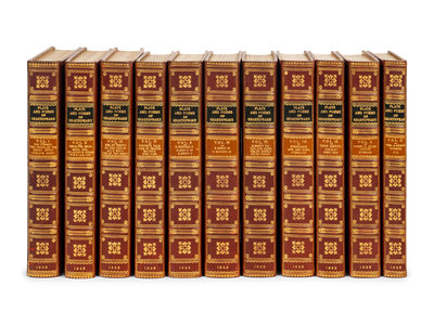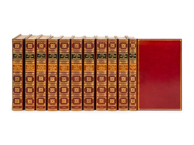 11 volumes, octavo. Engraved frontispieces. Late 19th-century red calf gilt, black and tan morocco lettering-pieces gilt, top edges gilt, others uncut. Collected edition.