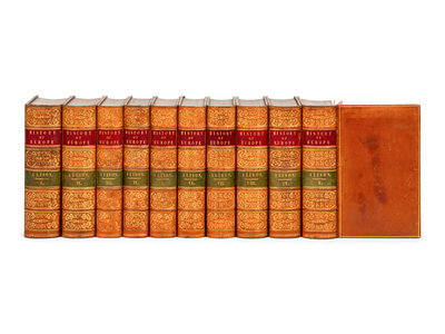 10 volumes, octavo. 19th-century tan calf gilt, red and green morocco lettering-pieces gilt, edges marbled. Sixth edition.