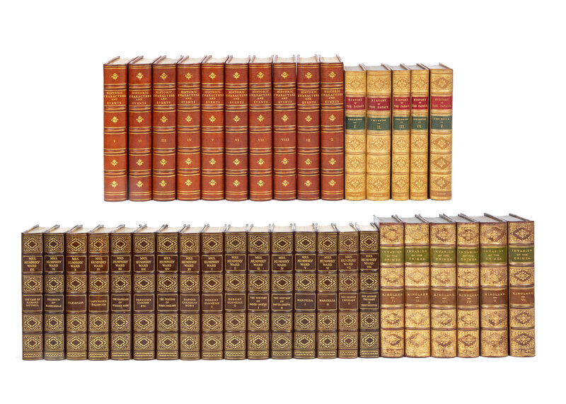 WARD, Mrs. Humphrey. Works. Boston, New York, and Cambridge: Houghton Mifflin Company, the Riverside Press, 1912. 16 volumes, octavo. Frontispieces. Contemporary half brown morocco gilt, top edge gilt, others uncut.