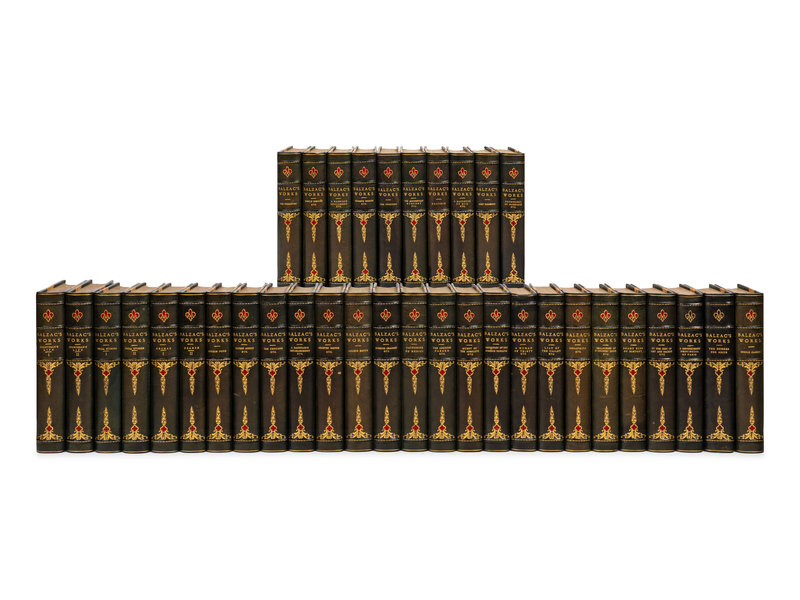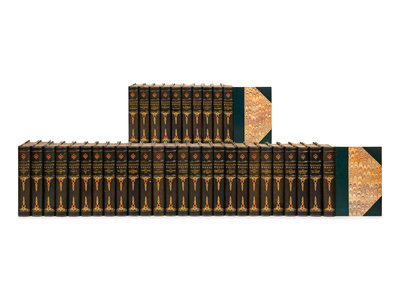 36 volumes, octavo. Frontispieces in two states. Contemporary half green morocco, spines elaborately gilt and decorated with red morocco onlays, top edge gilt. Limited edition, number 200 of 1,000 of copies of the "Edition Nationale."