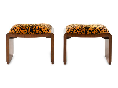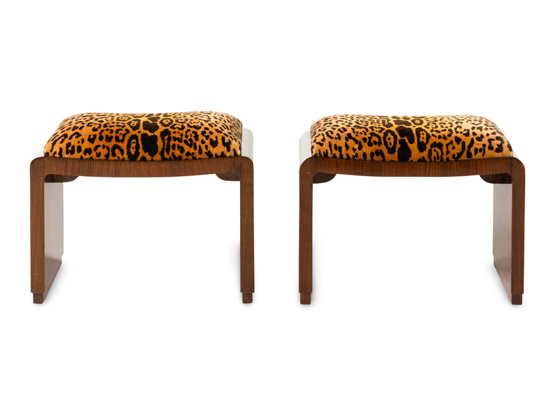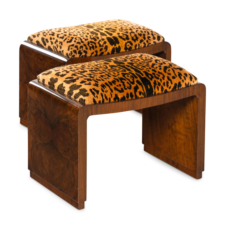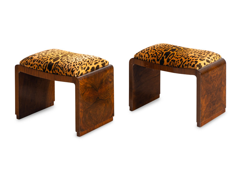 A Pair of Art Deco Burlwood Stools
