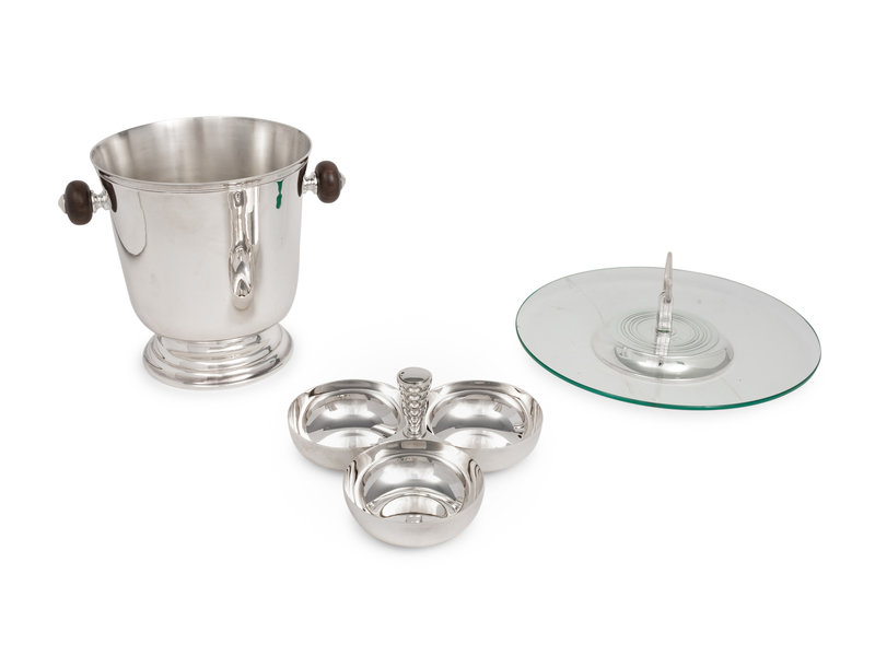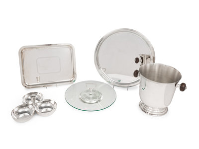 comprising a champagne bucket, round serving tray, rectangular serving tray, canapé dish and glass dessert tray.
