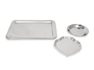 A Group of Six Silver-Plate Serving Trays