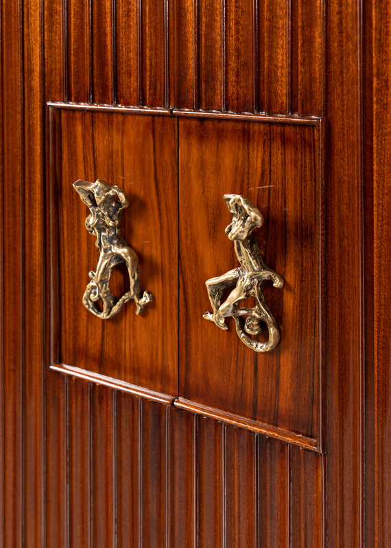 rosewood, mahogany, nickel-plated brass