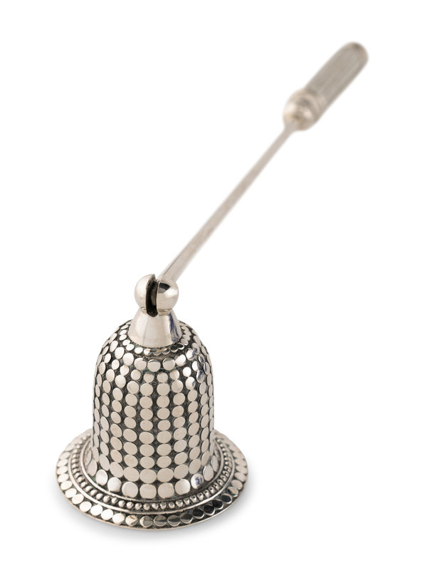 Height of votive holders 2 1/2 x diameter 3 1/2 inches; length of snuffer 10 1/2 inches.