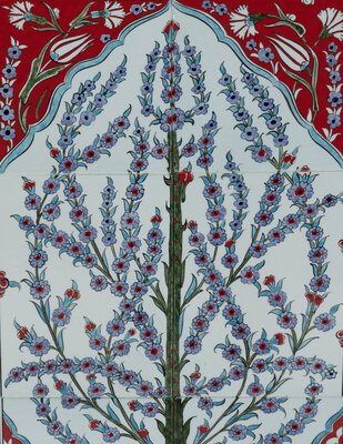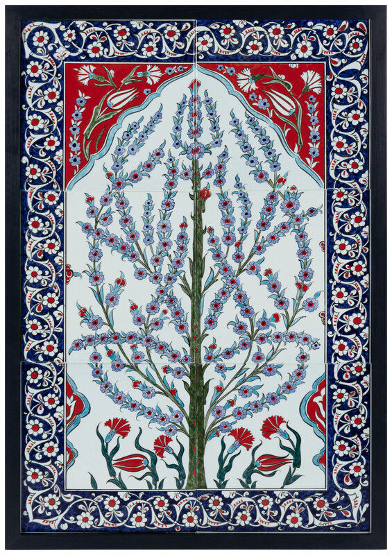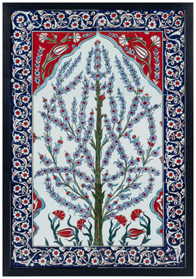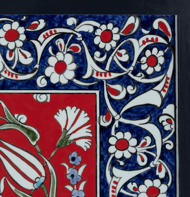 A Framed Set of Six Middle Eastern Glazed Earthenware Tiles