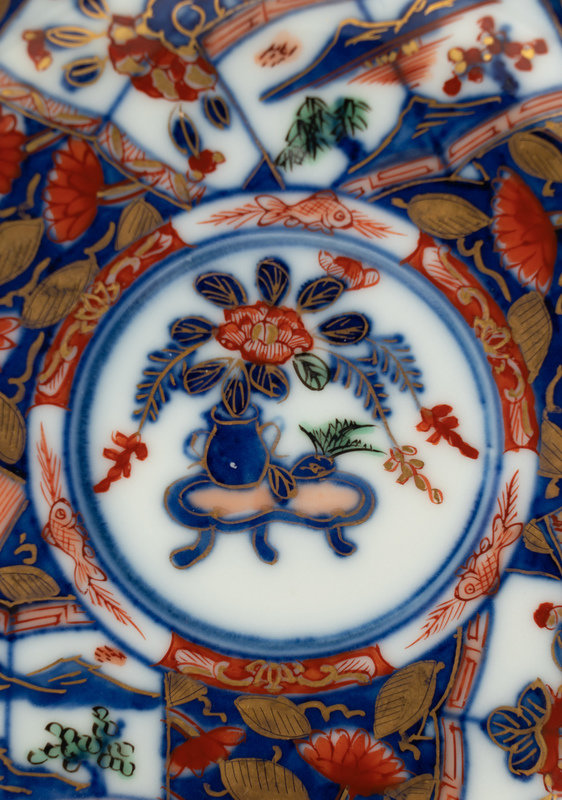 comprising five Japanese Imari plates and six Chinese blue and white plates of varying size and form.
