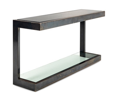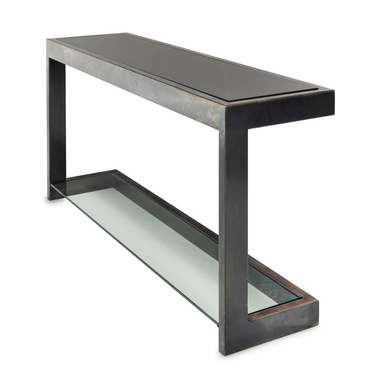 A Contemporary Steel, Granite and Glass Console Table