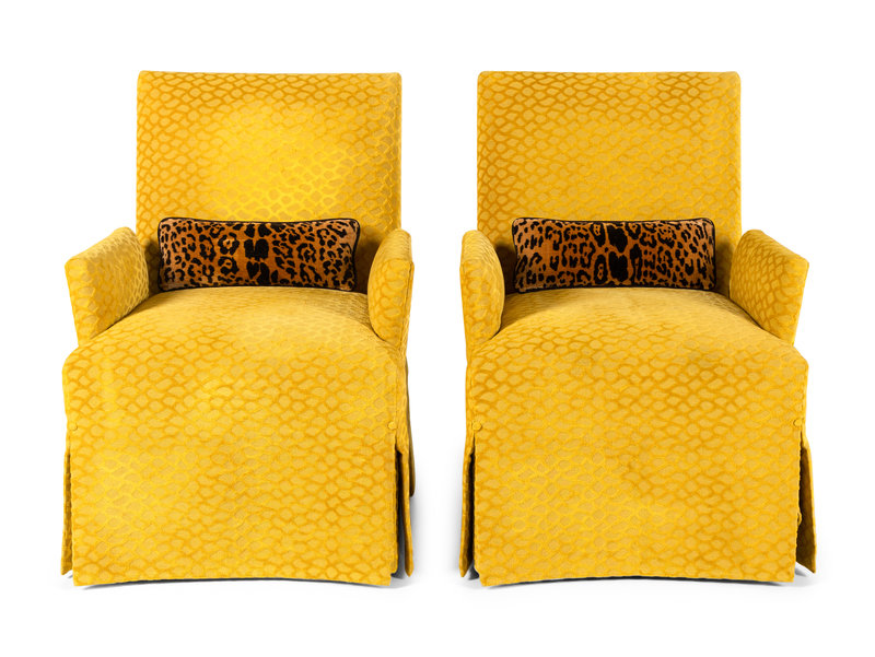 A Pair of George Smith La Rizza Armchairs with Custom Upholstery