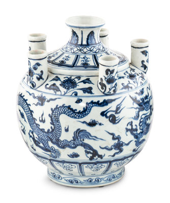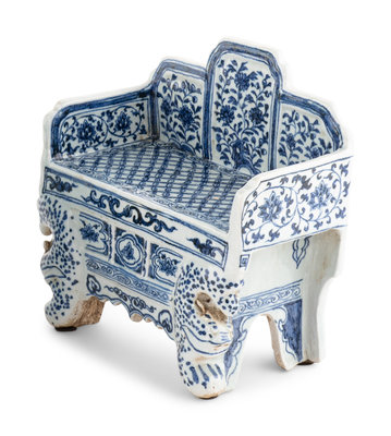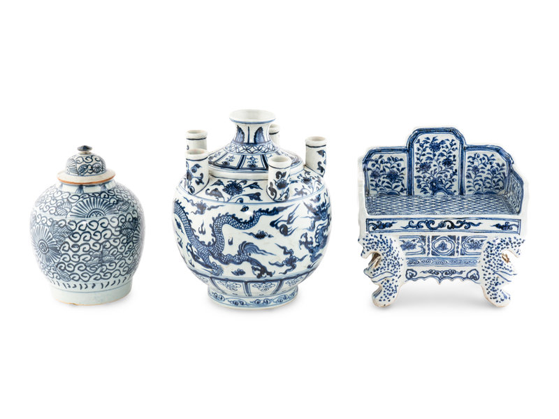 comprising a 'dragon' jar, a throne chair, and a covered jar.