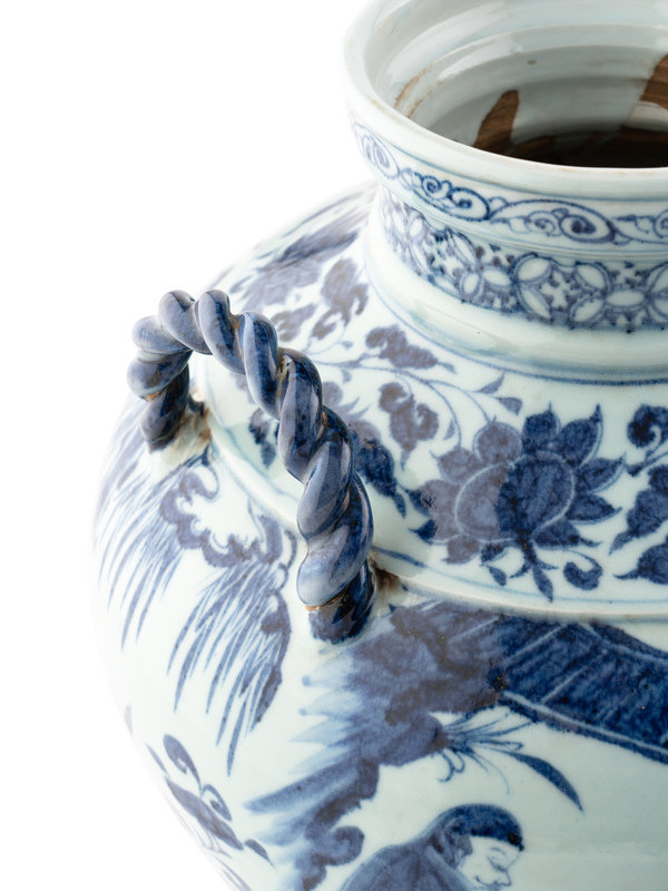 comprising a pair of rope handle jars, and a pair of small garden seats.