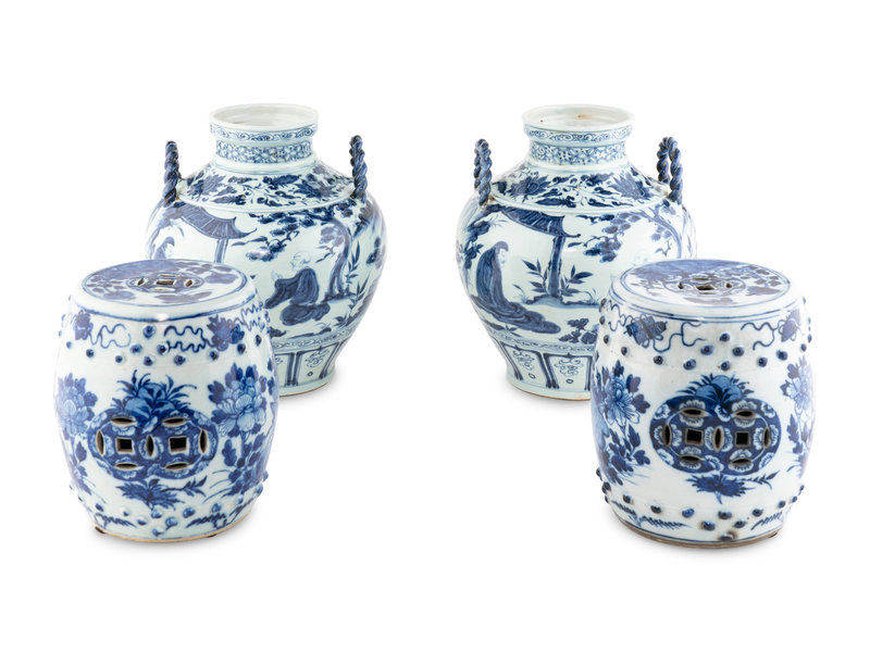 Two Pairs of Chinese Blue and White Porcelain Wares