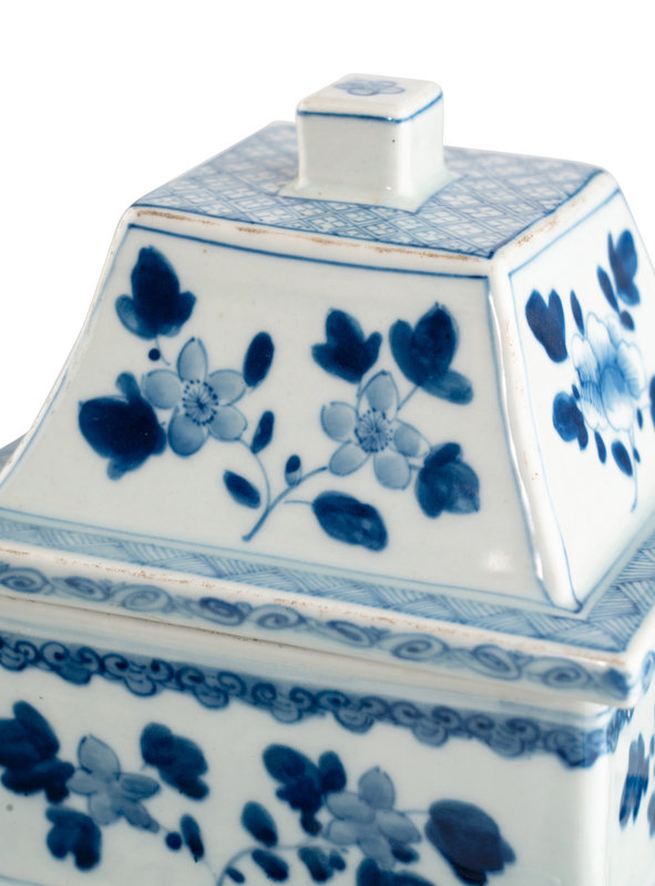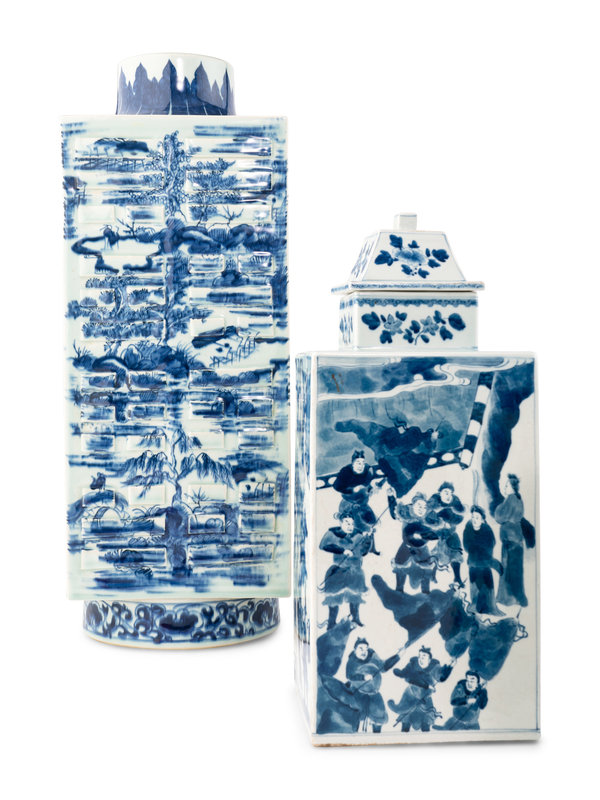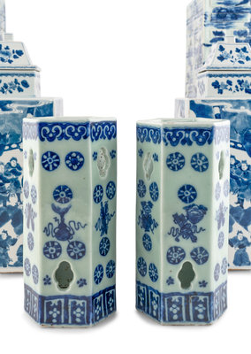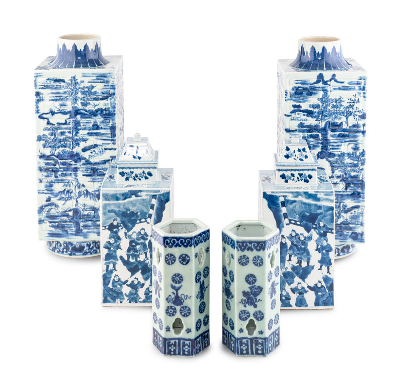 comprising a pair of hat stands, a pair of large Cong-form vases, and a pair of square jars and covers.