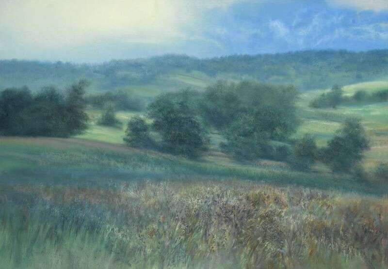 JOHN GUNDELFINGER (AMERICAN, 1937-1991) "ACROSS UPPER MEADOWS-SUNSET THROUGH HAZE"