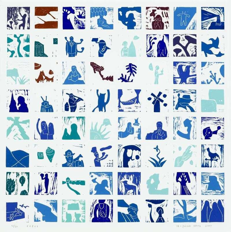 IK-JOONG KANG (KOREAN/AMERICAN, B. 1960) "8 X 8 X 9"COMPLETE SET OF NINE WOODBLOCK PRINTS