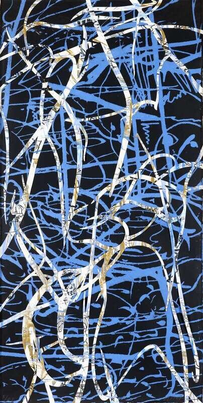 The abstract shapes of the present work echo the artist's unique felt work wall paintings in which cut-out fabric shapes pinned to the wall hang like the tangled forms of a Jackson Pollock painting. These immense, colorful, and often high contrast works in paper blend a wide range of techniques, fusing collage, watercolor, cut-paper, drawing, and more.