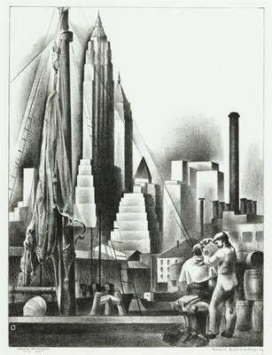 LOUIS LOZOWICK (RUSSIAN/AMERICAN, 1892-1973) "OPEN AIR BARBER"