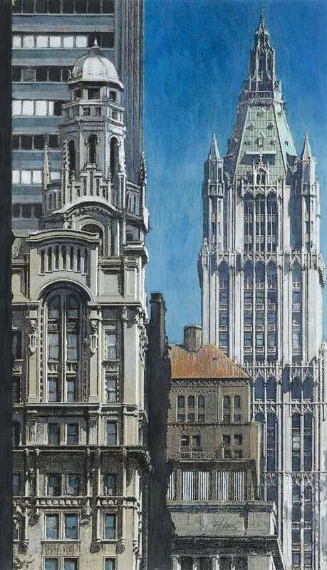 RICHARD HAAS (AMERICAN, B. 1936) "LOWER BROADWAY, WOOLWORTH BUILDING"