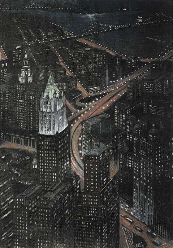 RICHARD HAAS (AMERICAN, B. 1936) "VIEW OF WOOLWORTH, MUNICIPAL WTC"