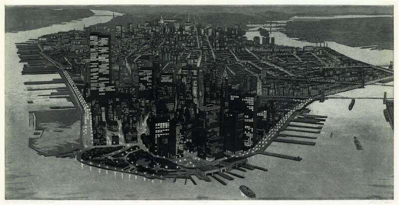 RICHARD HAAS (AMERICAN, B. 1936) "MANHATTAN VIEW: BATTERY PARK (NIGHT)"