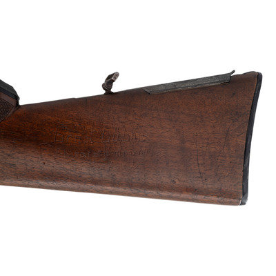 Emil V. Nordheim (1859-1938) was a master gunmaker and gunsmith from the town of Mehlis in Thuringia, Germany. This gun was most likely made post-1919 after the cities of Mehlis and Zella were united as one city, Zella-Mehlis, as is marked on the barrel rib of this item.