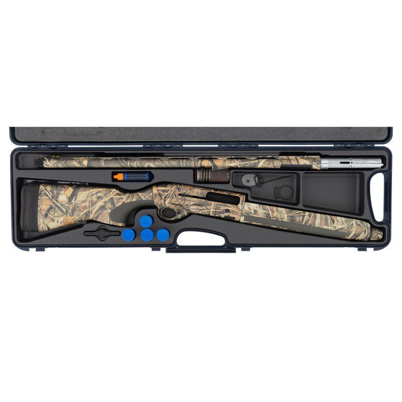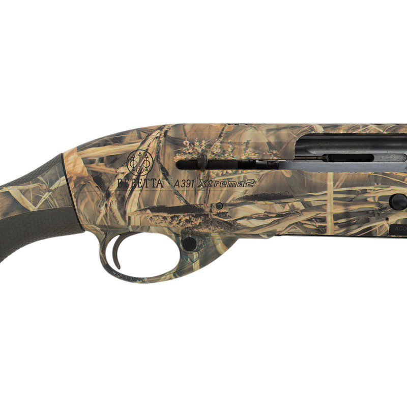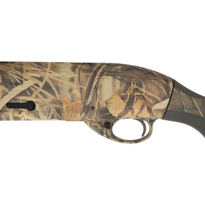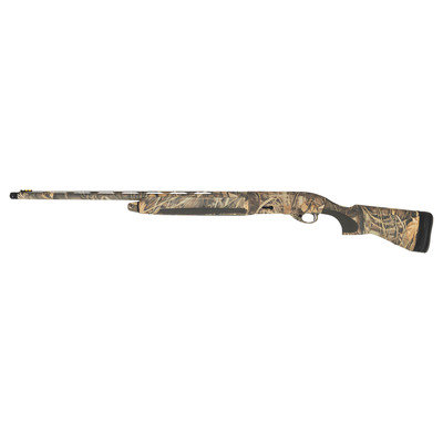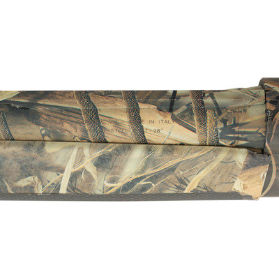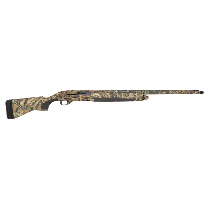 12 gauge. 28" barrel length. 14.25" length of pull. 1.5" drop to comb. 2.25" drop to heel. SN: AG076468. Carlson's Optima Plus ported choke tube insert. Realtree-style camouflage finish to metal and synthetic stock. Stock has textured rubber grips to semi pistol grip and beavertail forearm. Semi automatic shotgun with a matted low vent rib and yellow filament front sight. Item features an adjustable recoil pad. Included with item is original plastic case with four choke tube inserts and choke tool.