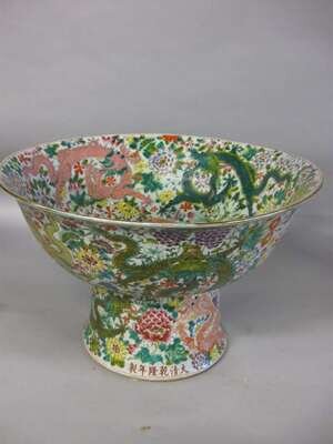 Large Chinese enameled porcelain stem bowl late qing dynasty