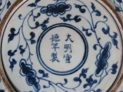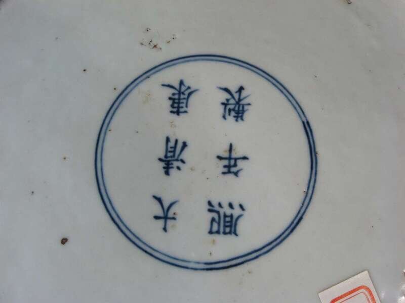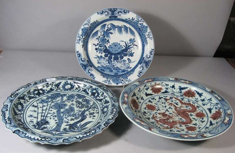 One with barbered edge together with two circular chargers of of the Kangxi style.