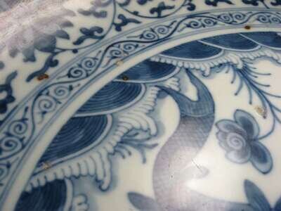 Chinese blue and white porcelain charger Qing dynasty