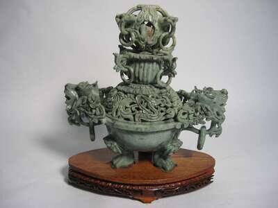 Large Asian carved soapstone censer 20th century